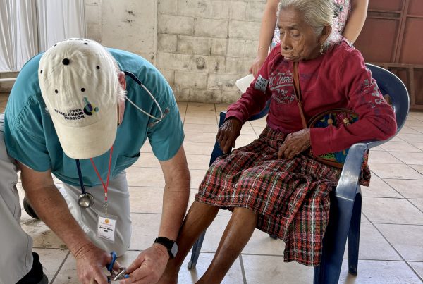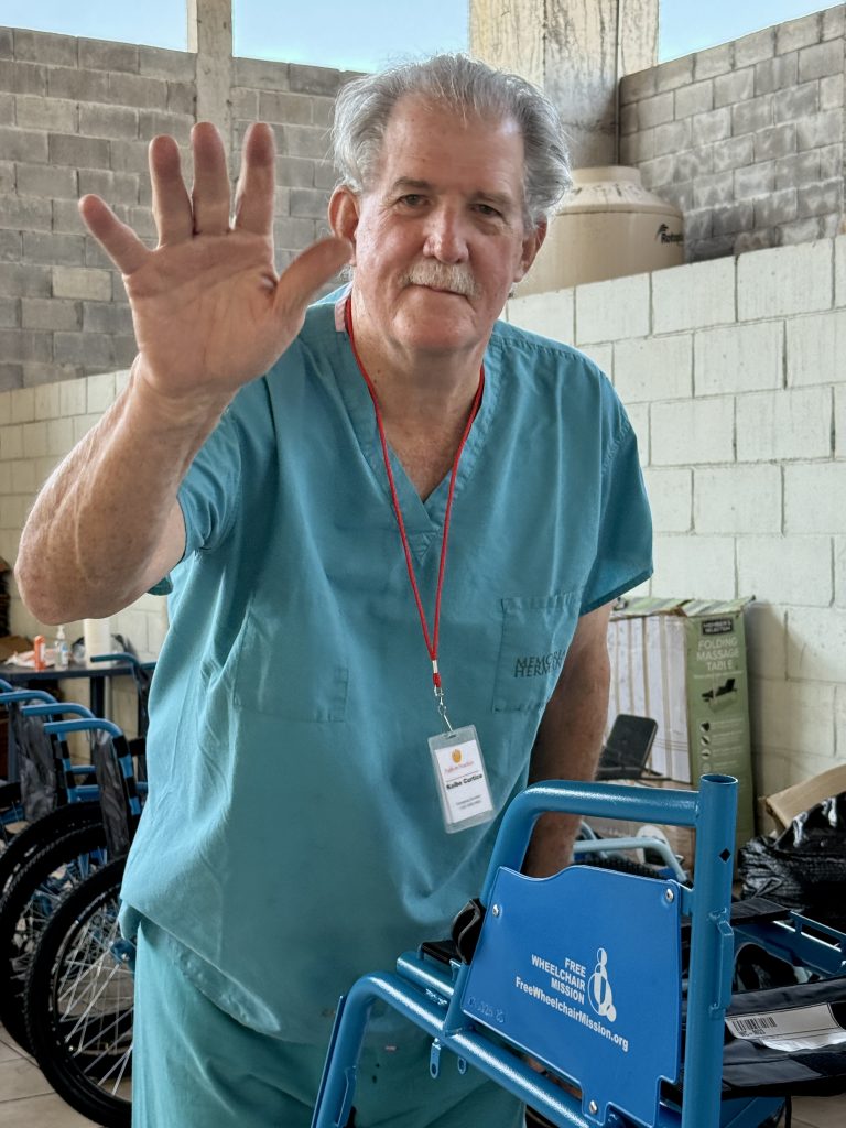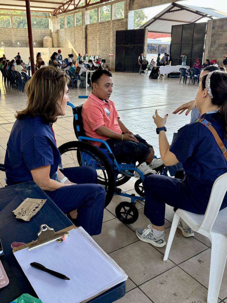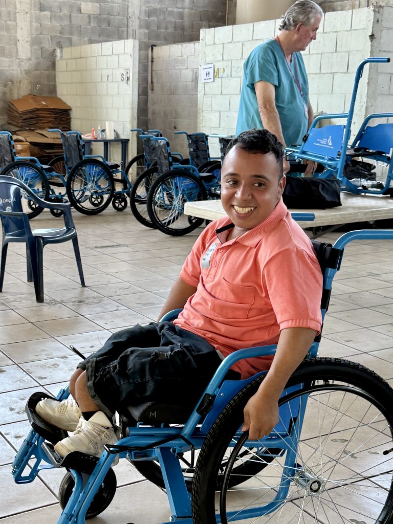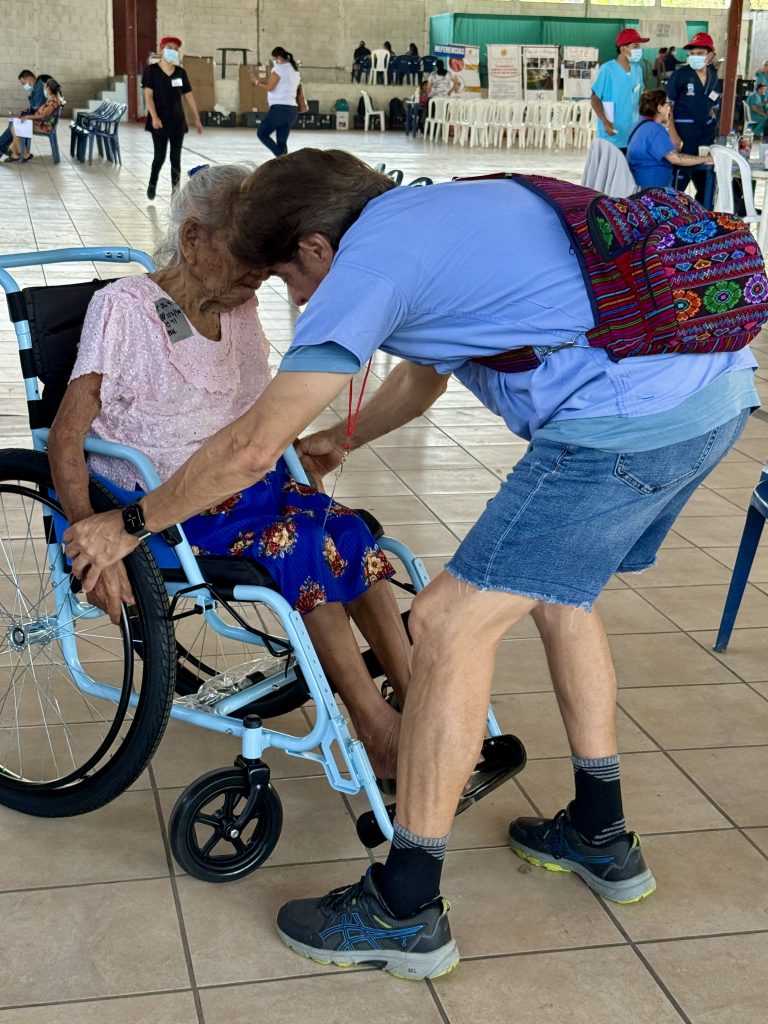 When I arrived in the Mobility Clinic area, my attention was drawn to an older gentleman waiting to see a doctor. He was here in hopes of getting a wheelchair. His name is Julio and he is 80 years old. His grandson is with him. With the help of an interpreter, we were able to communicate. He wanted to tell me his story and I wanted to listen. Julio is one of twelve siblings and worked on his parent’s coffee farm for most of his life. He suffered a tragic head injury in his younger years and was told it was a miracle he was alive. Recently he had a fall causing a fractured leg and hip and has lost his ability to have balance and stability. It is difficult for him and his family. I told Julio I am so thankful for his miracle of life because it allowed me to meet him. He will get his wheelchair today and I was given a lasting memory to hold in my heart.