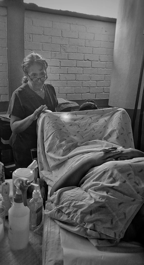 Antonia is also taking her health seriously, she and her family have put on their most beautiful traditional outfits to come in for her medical visit, she is 29 and has a cyst on her breast to get checked out. Her beautiful daughter (to the left), sister (to the right) and mother are with her (far right), though I find that my guess that they were both her daughters is pretty justified.