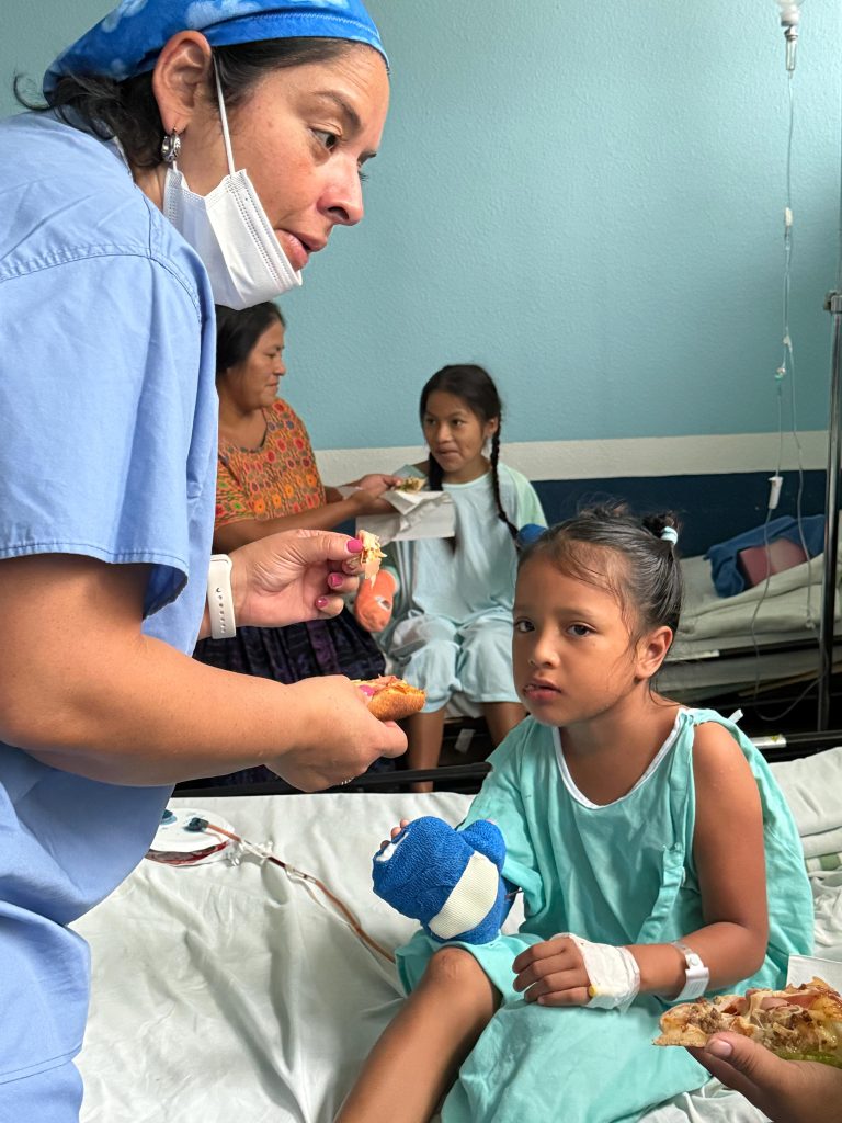 Beyond the operating rooms, the day was filled with small acts of kindness that made a big impact. Our CRNA, Yvette, surprised the children’s ward by ordering pizza—an unexpected treat that brought so much joy. Later, Yvette and our translator Kenya spent time helping the children with their hair, turning the hallway into a space filled with laughter, chatter, and connection.