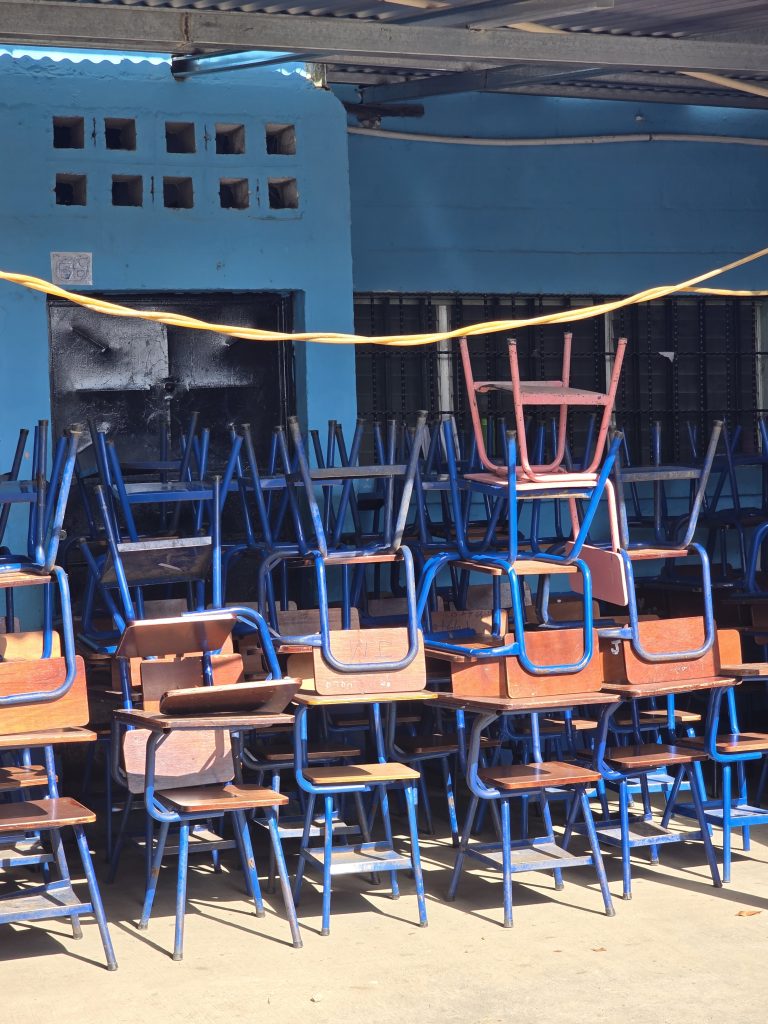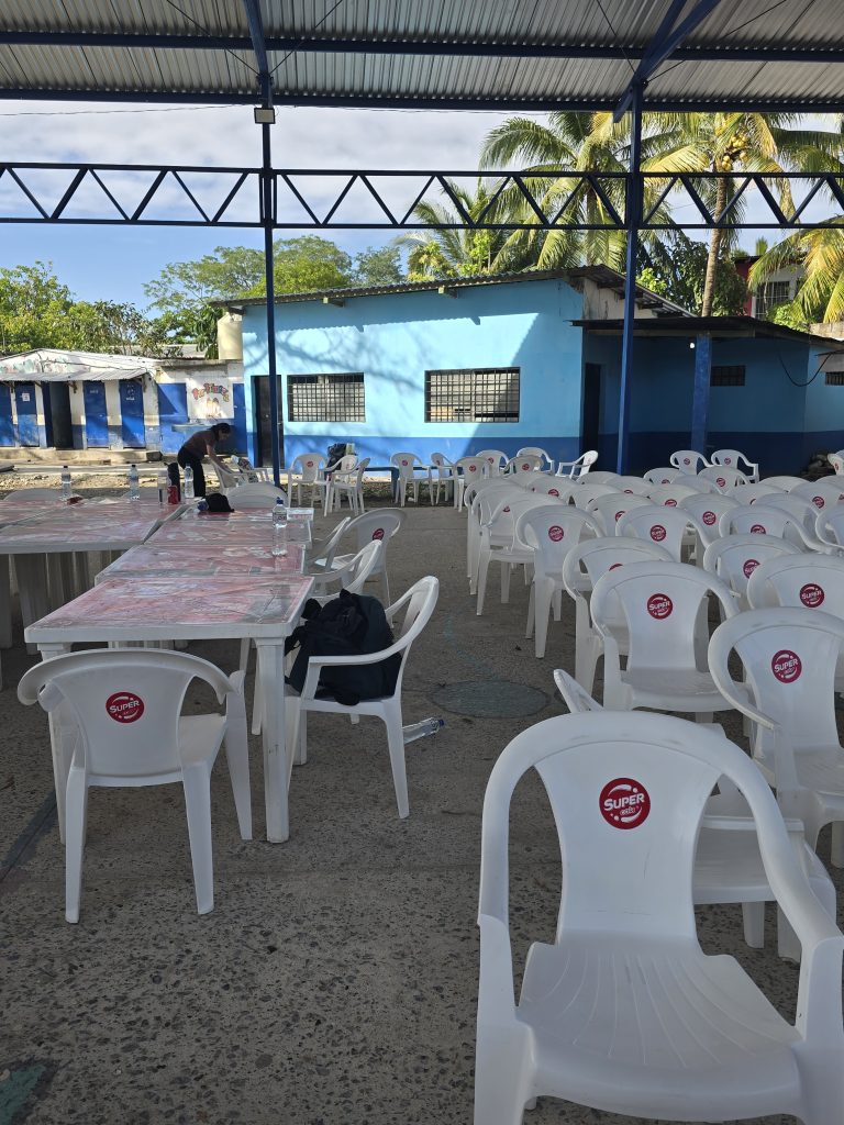 Joel led a small “advance team” into the school to assess the spaces available and to lay out the setup of what would be our clinic for the next four days, while the rest of us waited (not so) patiently on the bus. 10 minutes later it was finally go time!