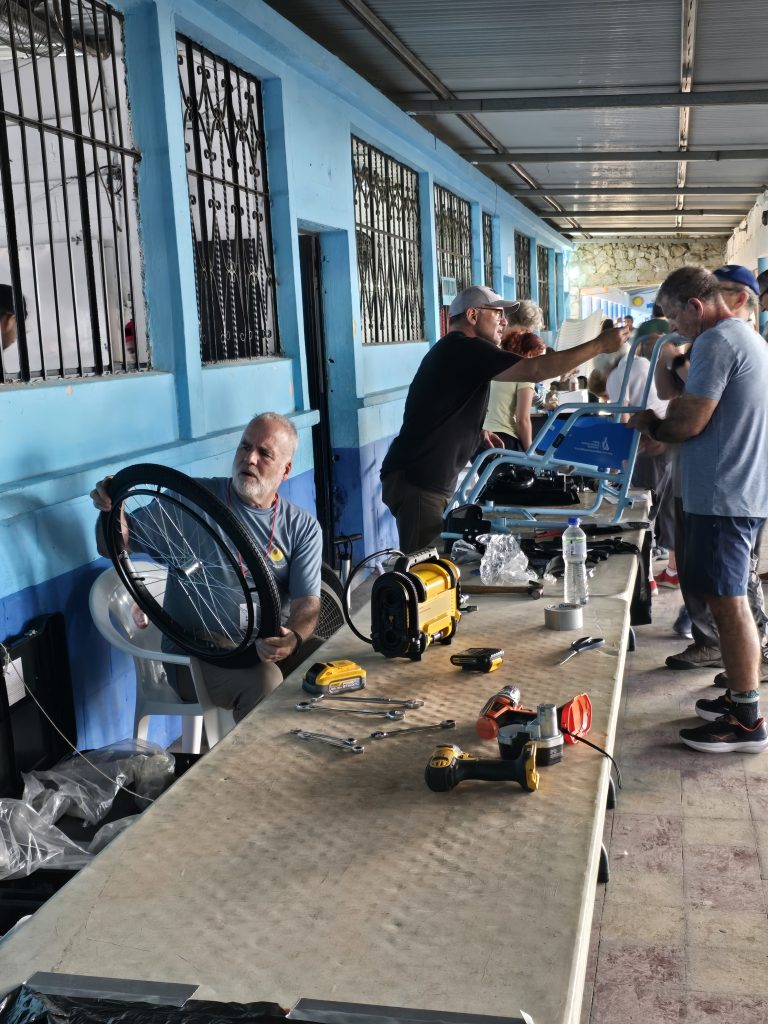 In short order, empty classrooms were transformed into medical clinics. Specialty equipment was set up, privacy screens were built, a wheelchair assembly station was erected, a pharmacy laid out, and triage and waiting areas established. It was a really amazing transformation made possible by exceptional preparation, organization and the experience of those that have been here before. While the veterans were nonchalant (“this is the way we roll”), as a newbie, I found this transformation incredibly impressive.