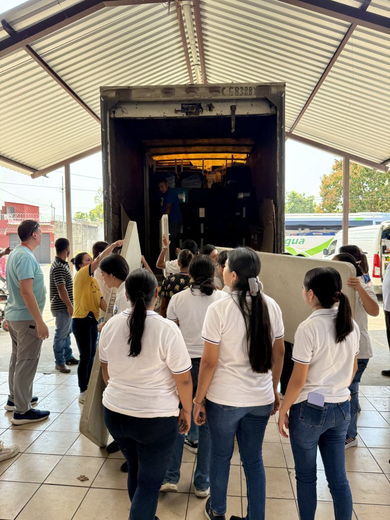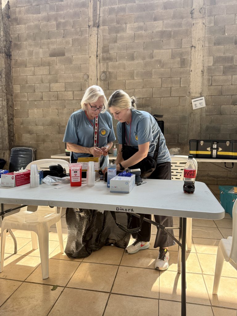 After gathering for instructions and introductions of the “Red Hats” and the “Blue Hats”, and the students/young adults who have volunteered their time to help us in many different areas of the Clinic this week (I will be sharing more about them through the week), the unloading of the waiting truck began. Everyone helps with lifting, moving trunks, and setting up Clinic Stations. The help of the students was very appreciated. They are kind and offer to help all of us no matter the task.
