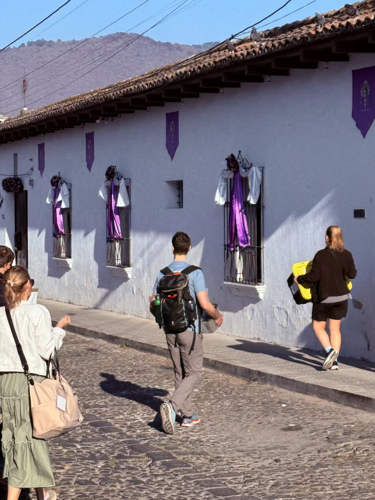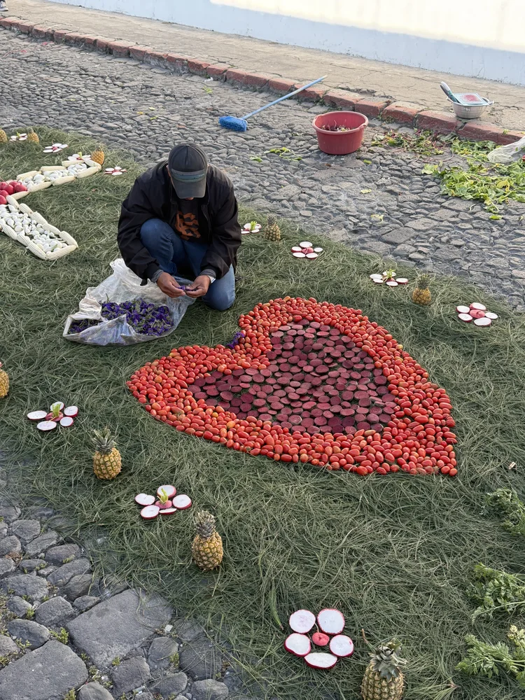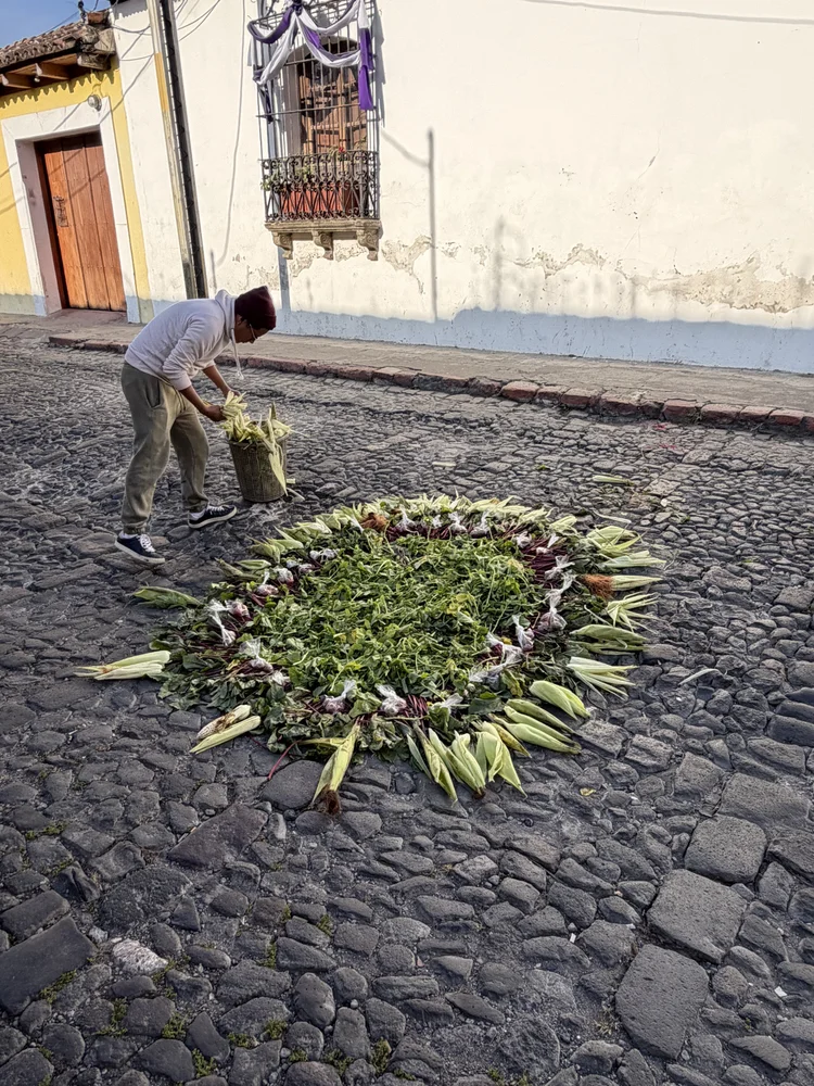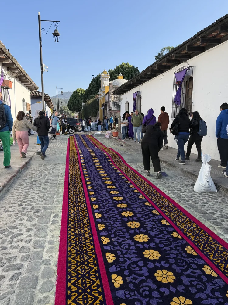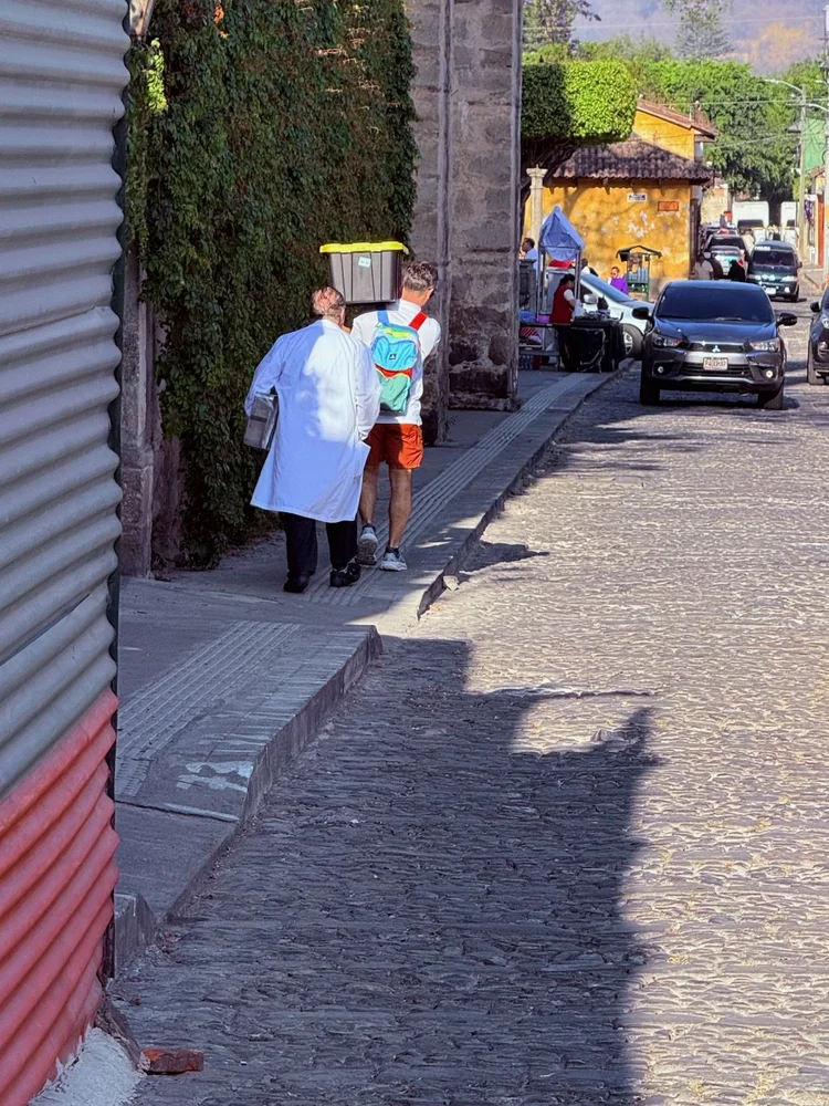 We walked the few blocks to the hospital, where the staff welcomed our team, Hope in Motion (HIM), to triage day. On the way, our walk was filled with sights and sounds of Semana Santa, the last Sunday of Lent. Colorful Guatemalan dress, meticulously made plant ‘carpets’, and people accompanying the dirge music filled the streets as the band and the people processed.