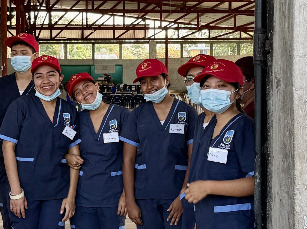 The “Blue Caps,” volunteers who partner with Family in Practice, identify and invite our patients. We also have the “Red Caps,” volunteers who serve to assist with movement through the Clinic and translation throughout their care, ready to serve and greeting us with smiles. ‘Red Caps” are young and typically in high school with goals of education in the medical field.