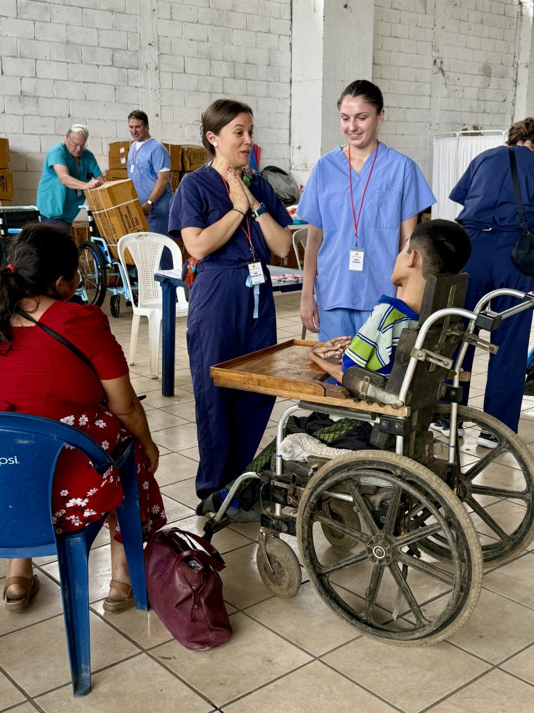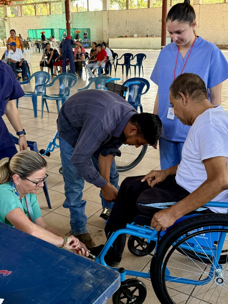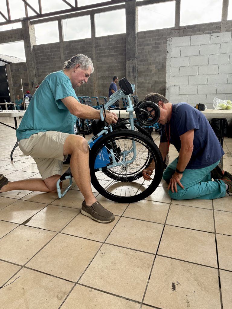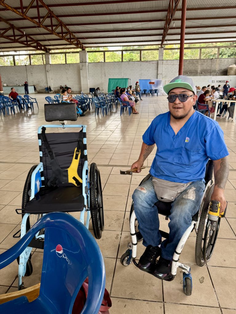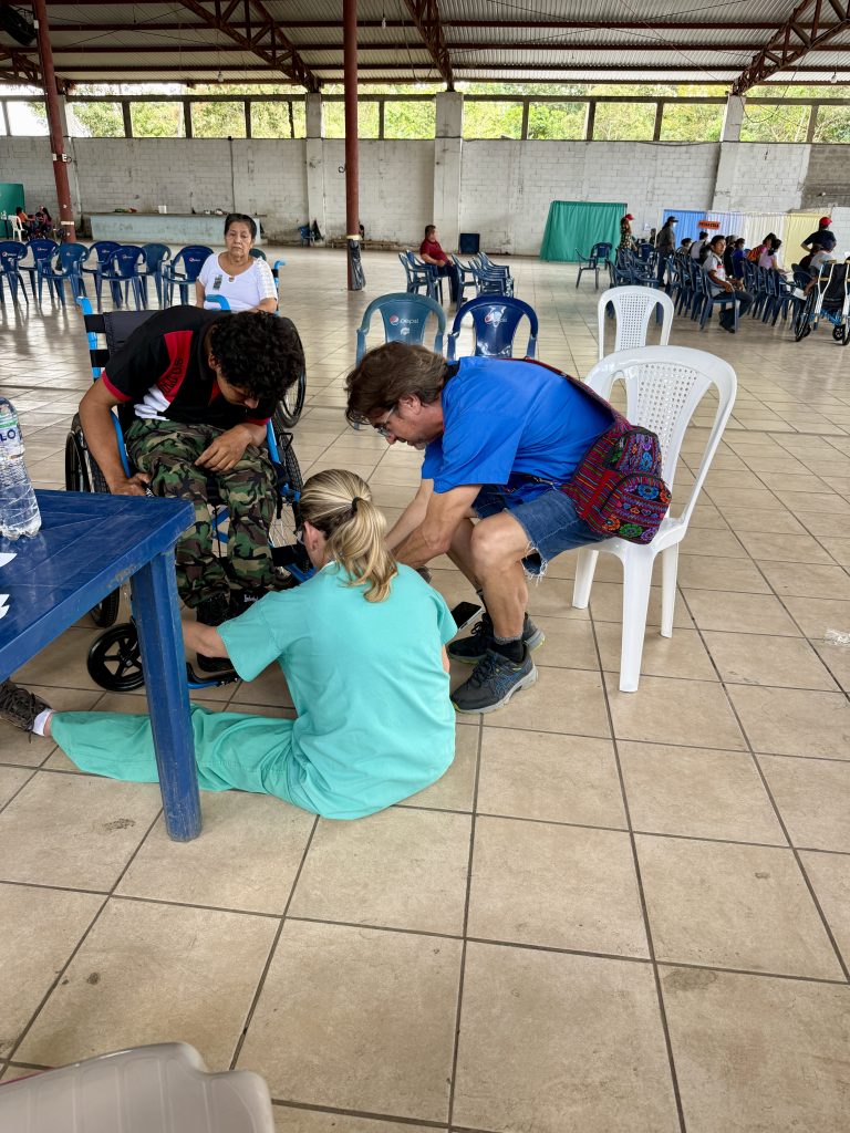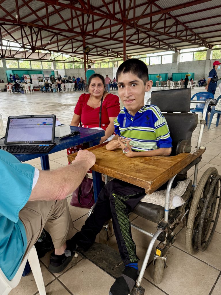 Today, I met a 15 year-old whose name is Carlos. He is here for a wheelchair. He has never been able to walk and, through Faith in Practice, will receive his third wheelchair. Imagine the burden lifted for his family. Carlos is here with his mother and brother. With the help of an interpreter, his mom was able to share with me they left their home at 3am in the morning to travel to the Clinic. She began to cry as she told me what her life had been like with her son’s inability to walk. Yes, I shed tears with her. The PT/OT working with him asked a wheelchair assembler to help adapt his new wheelchair for his special needs to provide a comfortable, safe mode of mobility. His mom cried (as well as the team members) when Carlos sat in his new wheelchair and smiled!