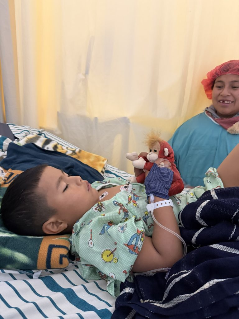 One of the first operations of the day was on a 4-year-old boy named Angel from Jalapa who had a club foot. The surgery was performed by Dr. Granberry with assistance from Shane Foss (scrub tech), Sara Guzman (anesthesia), Adriana Vides (nurse) and Estella Rincones (PACU.) Angel was accompanied by his mother, Darlin Yesica, who was incredibly nervous all morning and throughout his surgery. She was comforted by the warmth and support of Lucy Parker and Maria Vadillo who helped to calm her nerves, dry her tears, and provide assurance that Angel was in capable hands. Angel won the hearts of everyone who cared for him and, after a good, long nap in the PACU, could be found happily watching Paw Patrol by the afternoon in the recovery ward.