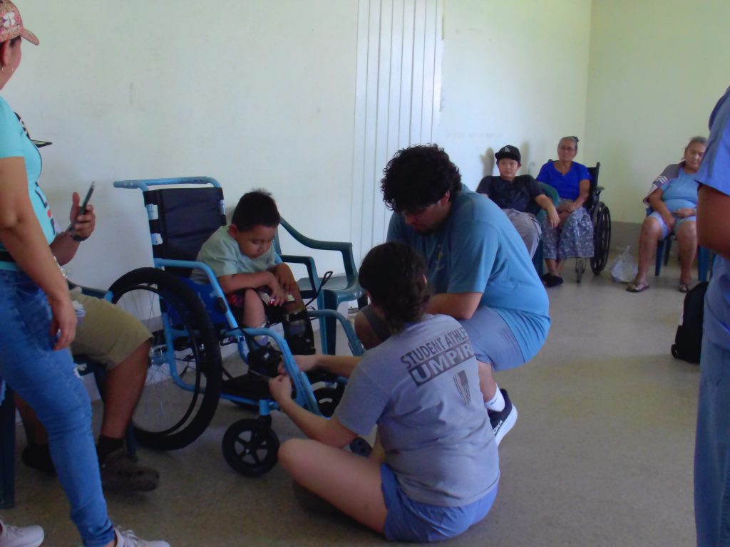 The third group was located in the mobility clinic which mainly consisted of our wheelchair assemblers, physical therapist, translators and team doctor. The wheelchair assemblers put together a large number of wheelchairs and helped fix crutches that needed replaced parts. Our team doctor was able to see around 25 patients today coming in with concerns of all types.