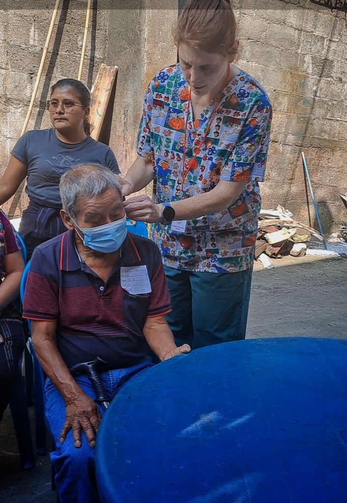 Here, I get my first opportunity to hear k’iche’, a mayan language spoken in the area. Visiting this part of the world gives us a glimpse into a different reality, I often bring up the differences in access to medical care and in “extended” family values, but there are more subtle ones. Such as the colors in a traditional dress, the beauty of a photo with no noticeable pose. But I digress, the next Audiology patient fitted for a hearing aid is Jose, he is 83 and I have him in my sights. I recall from prior years that there is nothing quite like the change in expression on the face of a grumpy looking older gentlemen when he first hears the voice of a loved one. Jose is with his daughter Isabela (43) and granddaughter Lidia (28). You can feel the love and respect for their elder but they do not share my optimism, they have, understandably, become frustrated by the years of yelling to try to get through to him. Per instructions, once the hearing aid is on, they speak to him, they speak to him in k’iche’. You tell me, but from where I’m standing he looks surprised and delighted to hear their voices. I knew I wandered over here for a reason!