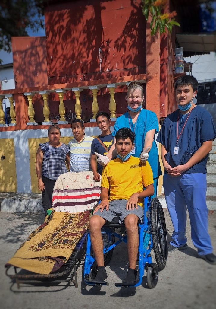 That brings us to the last patient story I want to share from today, we met Markus right at the beginning of the day. He is 23 and unfortunately had a motorcycle accident that fractured his pelvis. He is carried in by his family on a stretcher. While every care seems to have been taken to make it comfortable, it is less than ideal. We are able to confirm the previous operation on his broken pelvis was successful and things are healing just as they should, however the family do not seem aware that progressing in Physical Therapy (PT) is a necessary next step (excuse the pun). Since getting the surgery Markus has not received any instructions on attempting to regain muscle and mobility. His brother is attentive to the PT’s instruction, taking notes and making videos, and his family literally carried him to the clinic, they plan to get through this, together. Today he is leaving with a wheel chair and clear instructions that should have him walking within 6 months. I muse at what would have happened if they had not come to clinic, the surgery was successful but he had not yet tried to move. I am told it is an all to common story that locals will get needed surgery but then not move on to rehabilitation and therefore not regain mobility. It is a natural assumption that if it hurts it must be bad, our team of experts is here to reassure him that it will hurt, but through it he will get better.