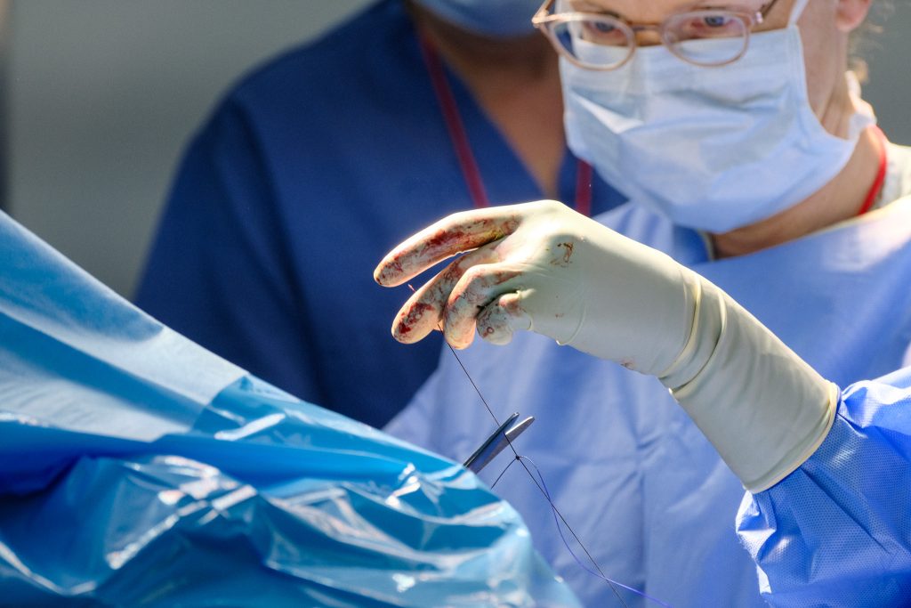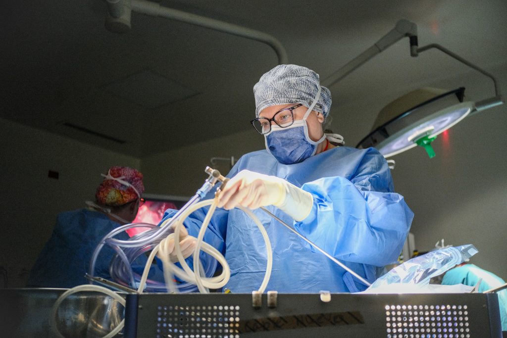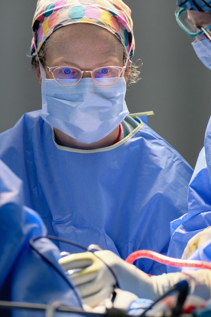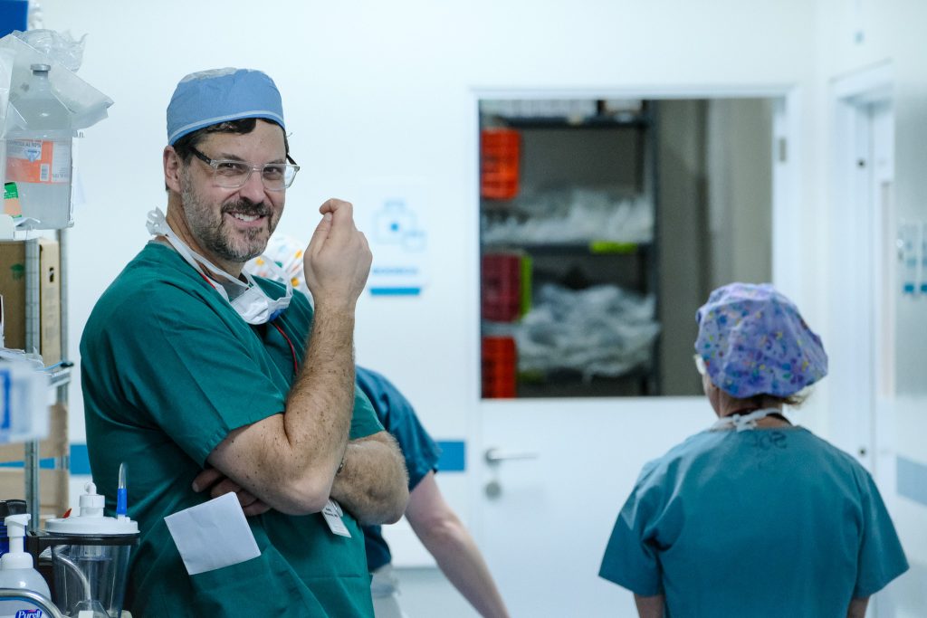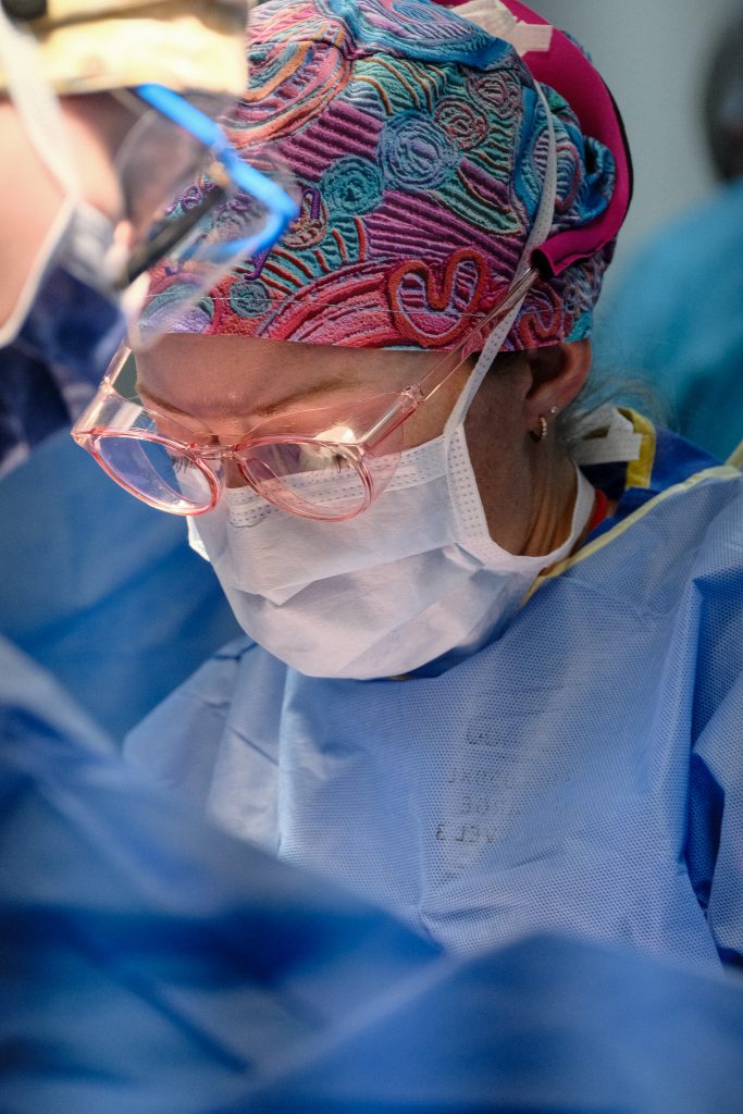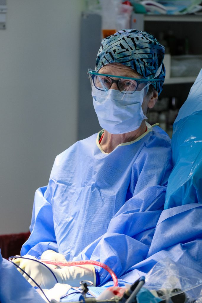 The surgeons perform their subtle choreography of donning sterile gowns and gloves, the dance that looks awkward to outsiders but precise to those who know. The cadence of surgical language settles in — smooth, direct, efficient. It’s remarkable how quickly a group of professionals can move as if they’ve been working side by side for months instead of days.