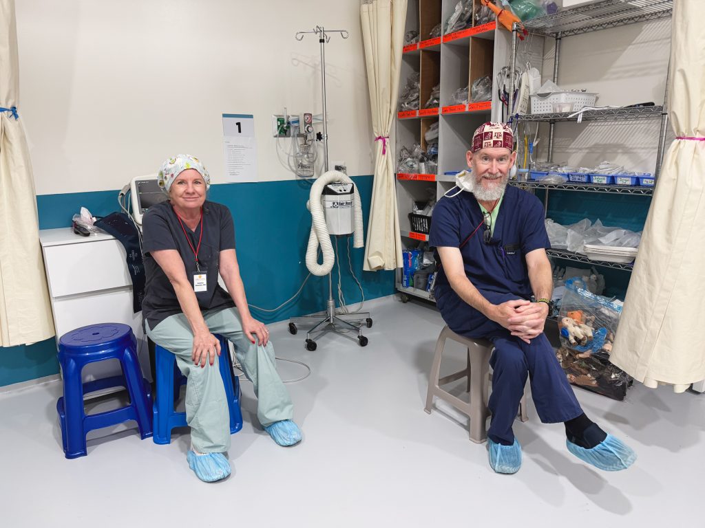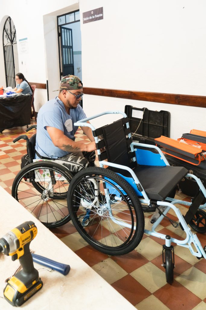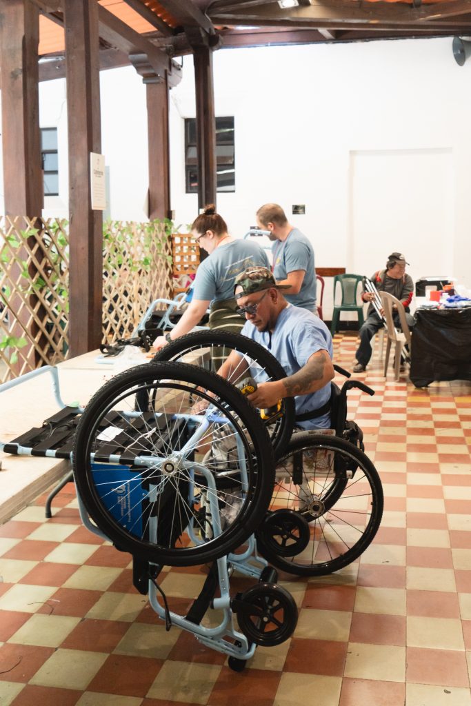 Our wheelchair and walker constructors Jamie Morris, Kristin Baker and Byron, the inspiring Head of the Mobility Clinic who, in a wheelchair himself, can build three wheelchairs at the speed another may build one to provide actual physical aids. And their efficiency has a record: this week alone, 114 wheelchairs, 21 walkers, and 11 canes were distributed, with a total of 146 people provided with mobility care.