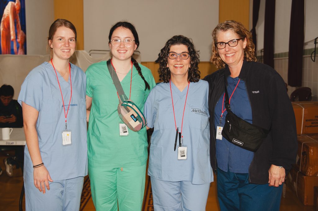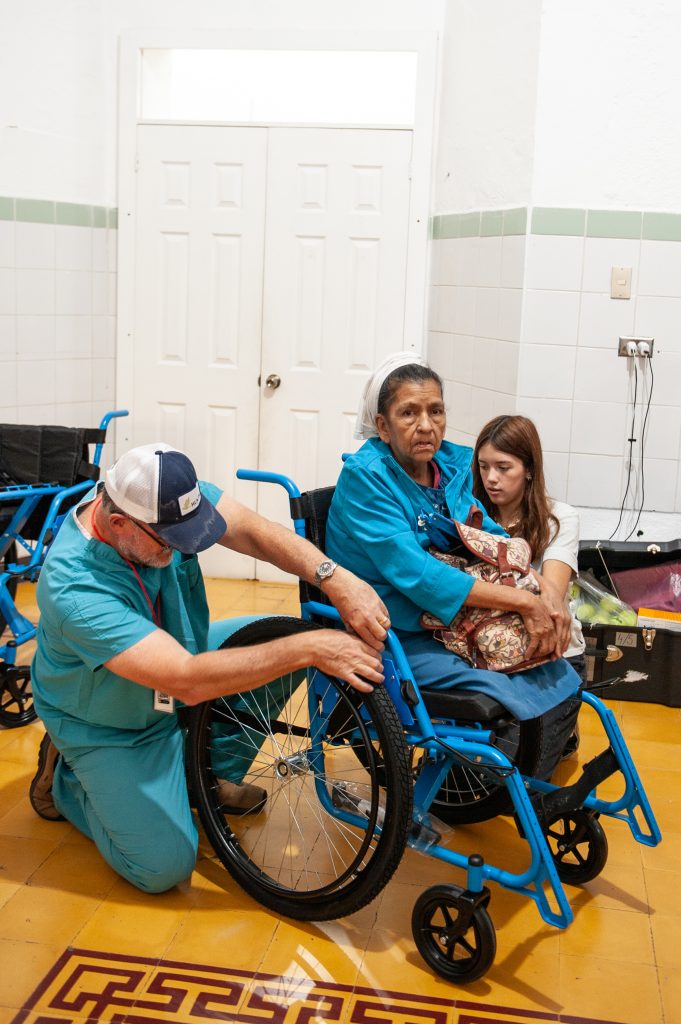 The work of the Mobility Clinic is a complex and multifaceted process. With so many patients needing a range of mobility care, things must run smoothly. The department relies on several members including Team Doctor, Mike Noel, to first provide a standard mobility check-up. Our wonderful Physical Therapy team, including Ashley Wyrick, Emma Smith and David Wendeborn provide the proper mobility tool whether it be wheelchair, a walker or cane. Tracy Nettles provides translation and communication between the patient and care team, working with the patients to make sure they know how to navigate these new mobility tools. The team provides instruction and insights for the patients on how to best navigate their mobility issue at home.
