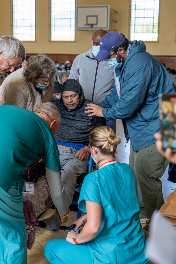 Mobility clinic physician Dr. Bernie Gallacher was first on the case, but he quickly called upon trip leader Dr. Phil Johnson and orthopedic surgeon Dr. Mark Woolf, who usually joins surgical teams but has been a part of the Johnson team twice to assess patients in villages.