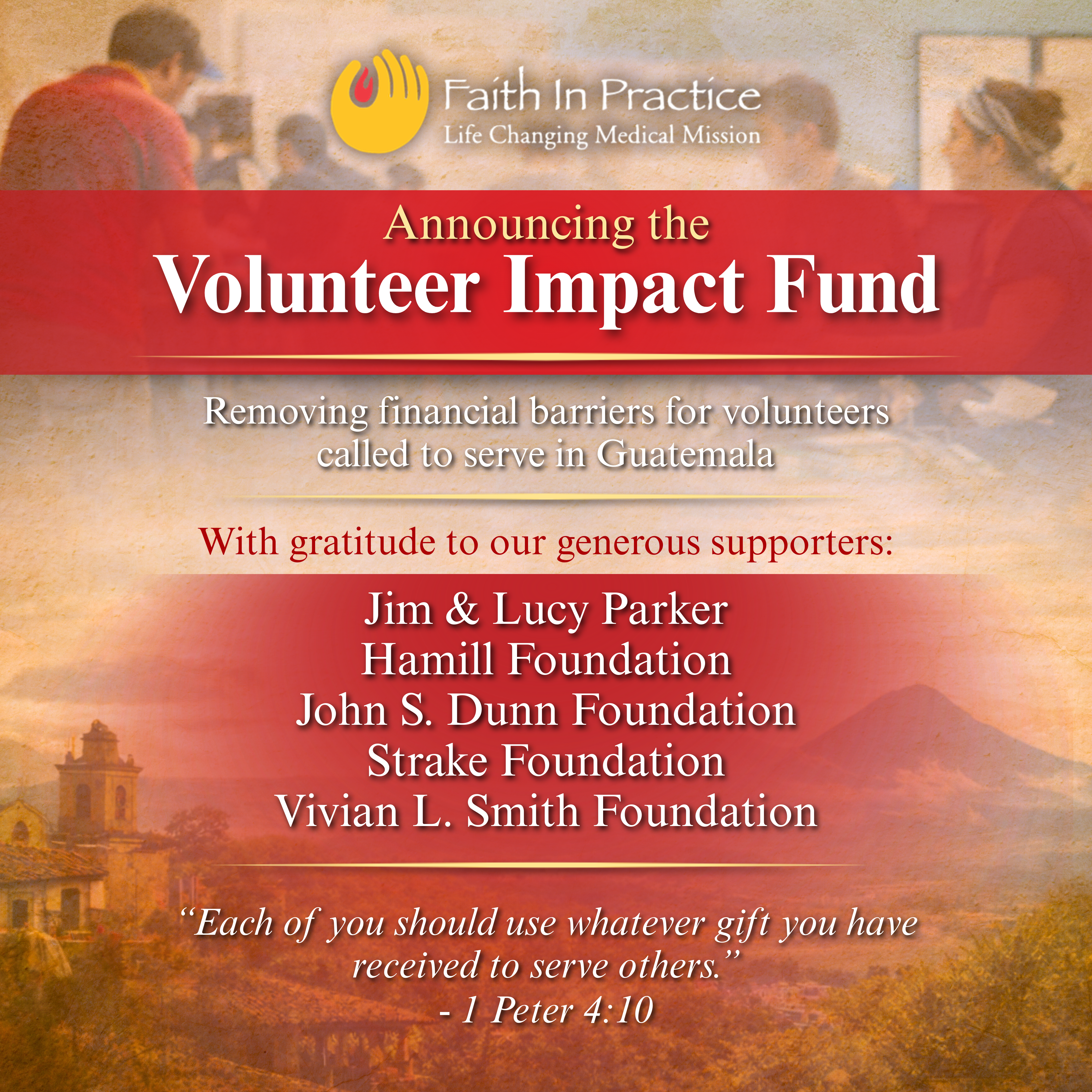 STEP 1: The volunteer requesting sponsorship must first speak with their team leader of their intent to apply for sponsorship and request the Faith In Practice Sponsorship Application: Volunteer Application.